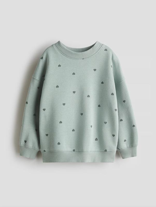 Світшот із суміші бавовни H&M. Колір як на фото з сайту. Всередині м'який фліс, круглий виріз. Просторий крій. Спущені плечі та рубчик навколо горловини, манжетів і подолу. Склад: 50% Organic cotton, 30% Recycled cotton, 20% Recycled polyester Розміри: 98/104, 110/116, 122/128, 134/140 Колір як на фото з сайту 134/140 Плечі 53 груди 46 рукав і плече 63 довжина 55