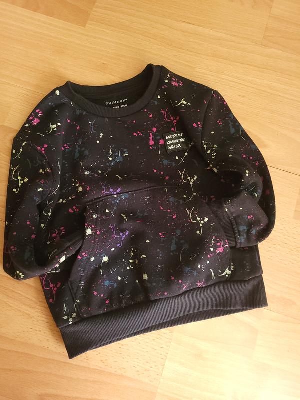Размер: 92 см (1.5–2 года) 🌈 Яркий принт с цветными брызгами - стильный, веселый, идеальный для активных малышей 👕 Мягкий, приятный к телу материал, эластичные манжеты и пояс 📍 Вироблено в Бангладеш 📸 Состояние: очень хорошое