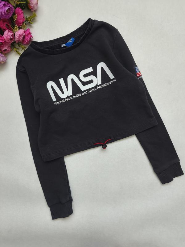 Свитшот укороченный Nasa на девочку, р. 134-140. А хорошему стану, без нюансов. Длина 35 см Ширина под рукавами 37 см Рукав от плеча 47 см