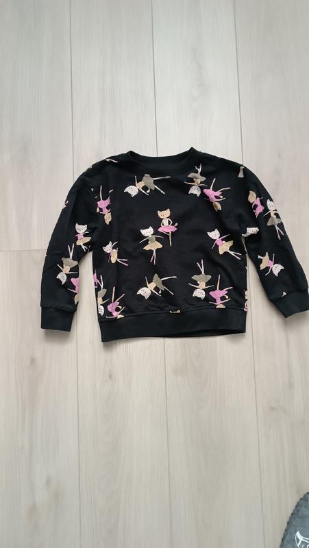 Свитшот на девочку в красивый принт танцующих котят.Размер 110.Все замеры на фото.