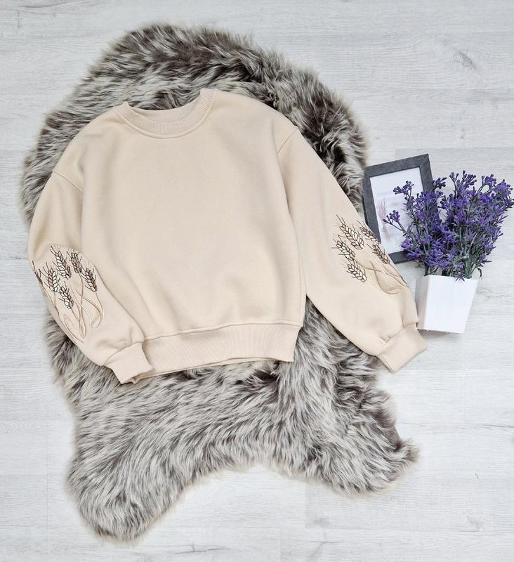 Стильный теплый свитшота с вышивкой♥️ Ткань трехнить пенье на флисе отличного качества Манжеты зерна Цвет беж РЕКОМЕНДУЮ ❤ долж/пог/рукав от горловины 134-45/44/58 🔥🔥🔥🔥🔥🔥🔥🔥