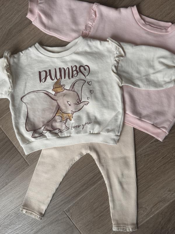 Речі для дівчинки на вік приблизно 12 міс. Молочна кофтинка 12/18 міс 80-86 10-11 к 97% котон. Рожева кофтинка на утепленні 9-12 міс 80 см 11 кг. 74% котон. Легінстюи 73 см. Будуть надовше, трошки великомірять. Стан ідеальний.