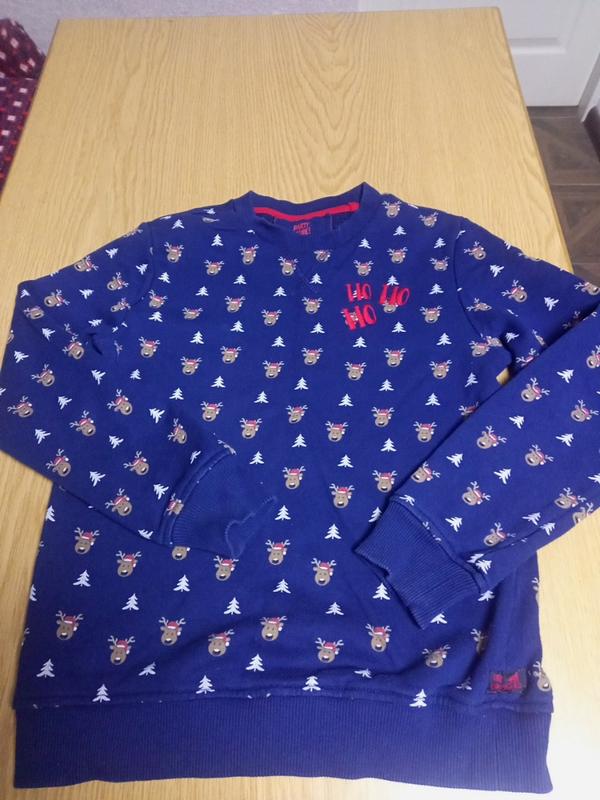 Классный рождественский свитшот для девочки. Полуобхват груди - 42, длина - 54, длина рукава - 50.