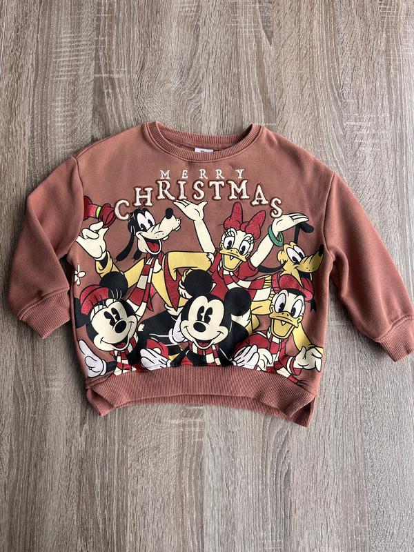 Свитер новогодний Next Disney На возраст 3-4 года Состояние хорошее! Длина- 40 см. Довж.рукавчика- 28 см.