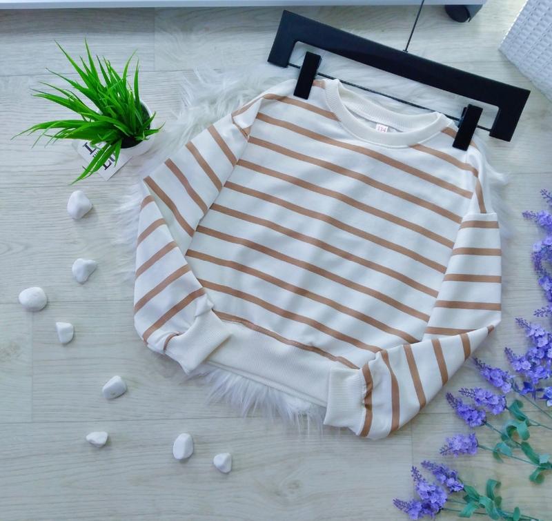 через кнопку купить только полная оплата!!! Свитшот в полоску 💐💐💐💐💐 На рукавах и по низу кофточки есть манжеты, классное качество, ткань хорошо тянется 😇😇😇😇😇 Тканина: двонитка пенье👍 Производитель: Украина 🇺🇦 ЗАМІРИ ⤵ +/- 1-2см!!! ◾р.146- длина 48см/ рукав от горловины 60см/ ПОГ 46см Д-арт: 0131