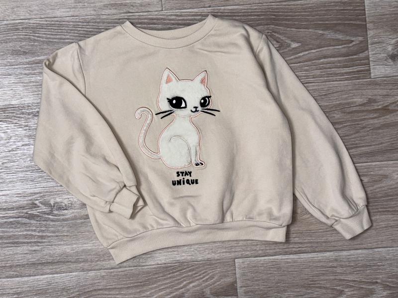 Свитшот с котом. Н&М Внутри на баечке Состояние идеал 6-8 лет/122-128 Длина 44. Пог 43. Рукав 44-54