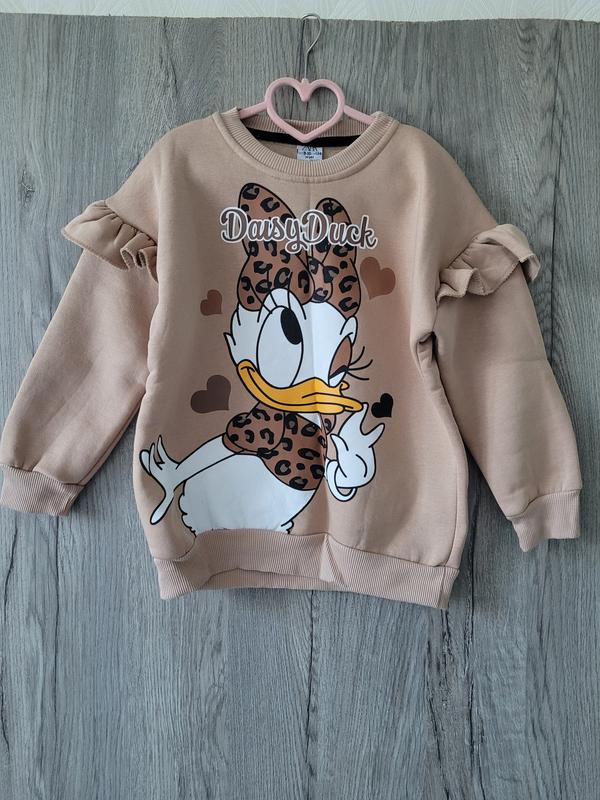 Продам свитшот для девочки. Новый. Теплый. Ткань трехнитка на флисе. Есть манжеты. Длина 50 см, ширина под грудью 44 см, длина рукава от горловины 49 см.