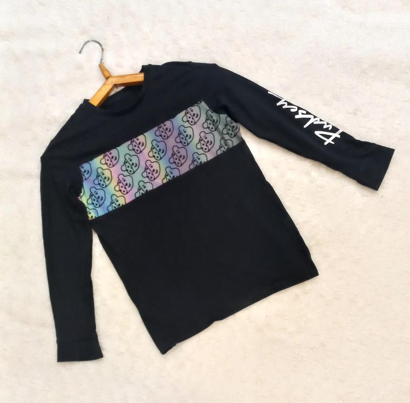 Лонгслів дитячий з надписвми на рукавах та вставкою. Довжина 54 см, довжина рукава 52 см, ОГ 86 см