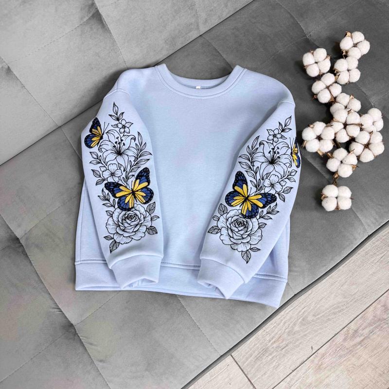 ❄️Свитшот Бабочки, вышитый. Ткань трехнитка на флисе, не скатывается. Рисунок- машинная вышивка. Хорошее качество и стильная новинка! 📐Замеры: рукав от горловины 128 - длин. 45 / полуобхват. 42/ рукав 50 134 - длин. 47/полуобхват.43/ рукав 52 140 - длин. 50 / Полуобхват.44 / рукав 56 146 - длин. 52 / Полуобхват.47 / рукав 60 🏷️695 грн Koalakads