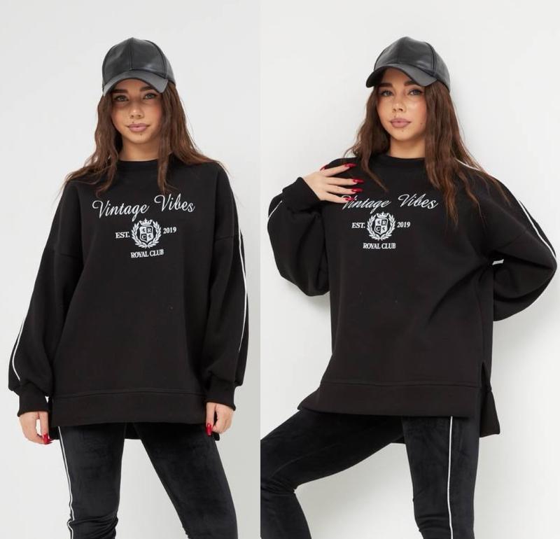 через кнопку купити тільки повна оплата!!! арт 6931 Світшот подовжений ОВЕРСАЙЗ з розрізами по боках теплий та зручний тканина тринитка на флісі манжети та горловина з рібани ГАРНА ЯКІСТЬ! зріст/довжина по переду/пог/рукав від горловини похибка+-2см 140-146/60/54/55-1шт 146-152/62/55/59-1шт