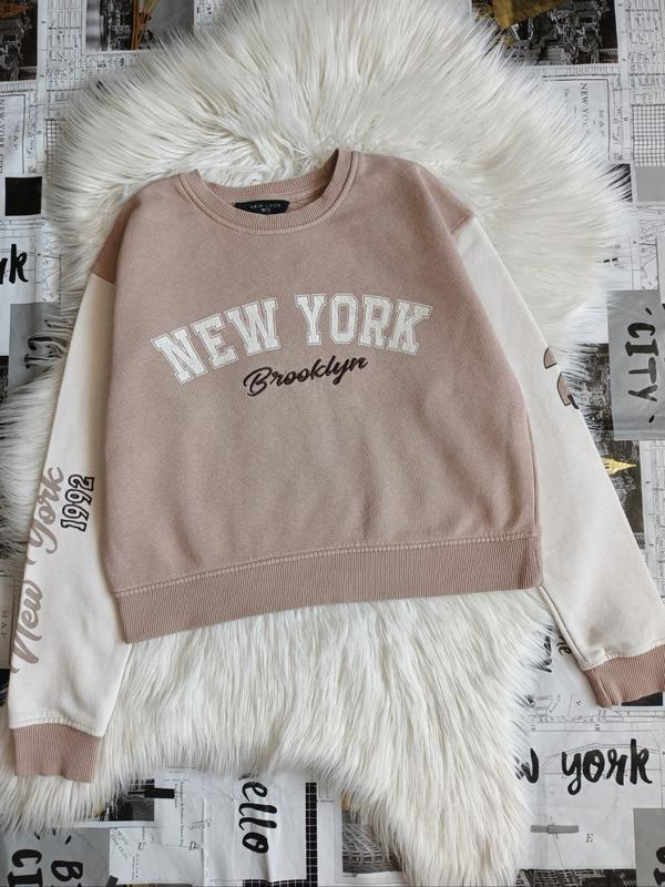 свитшот new look размер из бирки 9 р. 134 см. заміри є на фото. потрескавшийся рисунок и пятно на рукаве