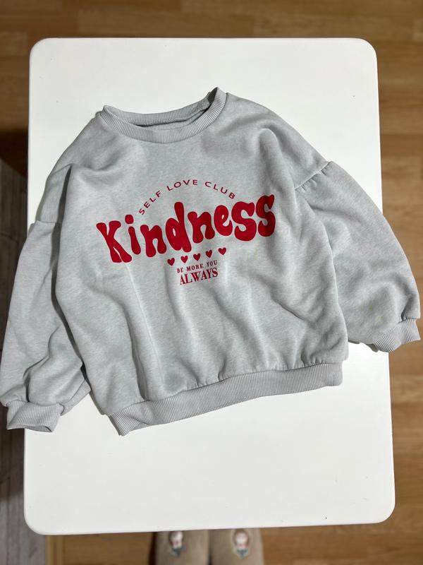 Оверсайз світшот ✏️ розмір:без бірки, буде на 4-5р, Довж 43см, рукав від горла 42см ✏️стан:є сліди жовтого фломастера, вказала