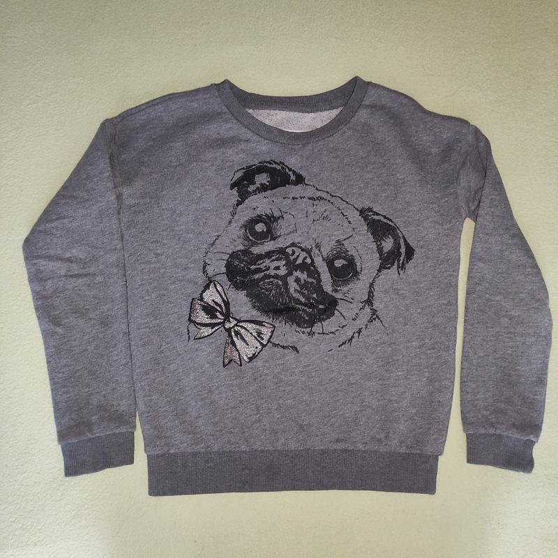свитшот с мопсом.состояние нормальное.размер 7-8 лет (122-128).длина 45,рукав 39,в груди 38,низ 30.состав не видно,но примерно хлопок с полиэстером. смотрите другие мои объявления.