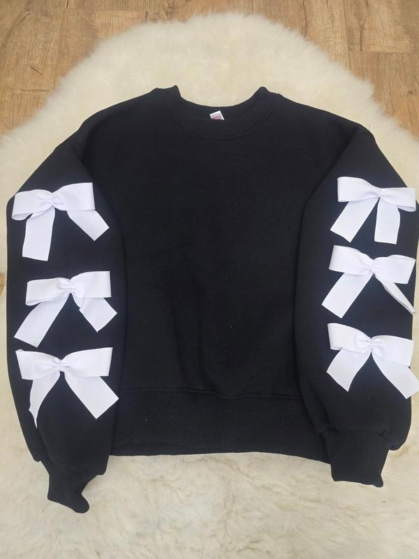 🎀НОВИНКА 🎀 Красивый свитшот, украшенный очень трендовыми в этом сезоне бантиками 🎀 Ткань турецкая двухнитка качества пенье КАЧЕСТВО ЧУДОВА❤️ ЦИНА 780 грн замеры:дл. свитшота/пог/рукав от горловины/от плеча 134-45/44/60/43 140-47/45/60/44 146-50/48/62/48 152-53/50/65/50 158-55/51/67/51 164-56/52/72/52 +-2 см 134-4шт 146-1шт 152-2шт 158-1шт 164-1шт