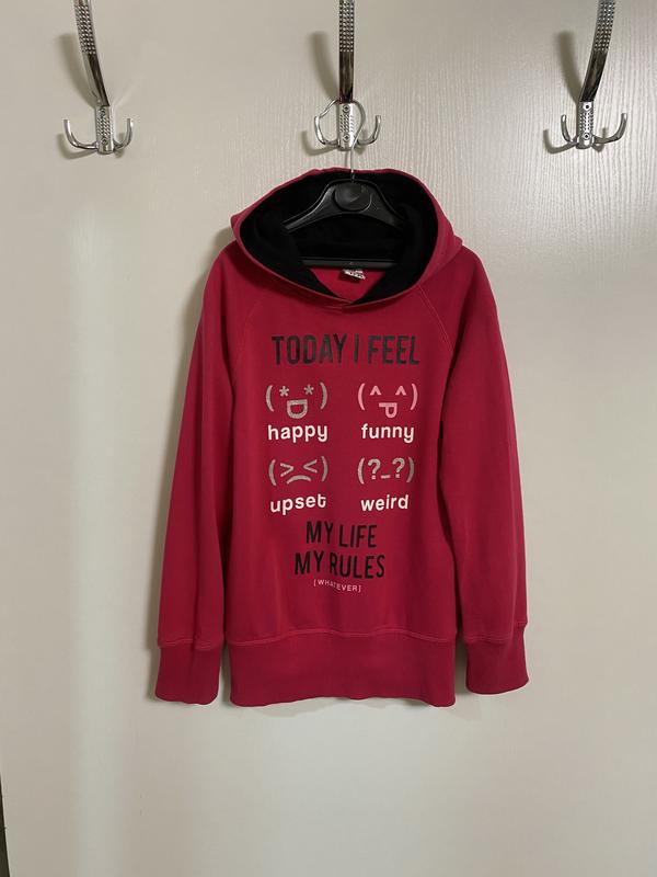 Світшот для дівчат. Розмір 8 років; зріст 128. Довжина по спинці від капюшона 53; довжина рукава від капюшона 55; ширина під руками 38,5.