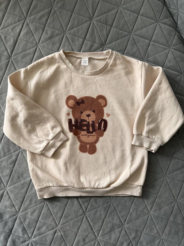Фирменный свитшот, универсальный, подойдет и девочке и мальчику, на начесике, с милым принтом-мишка, по размеру на 5-6 лет.