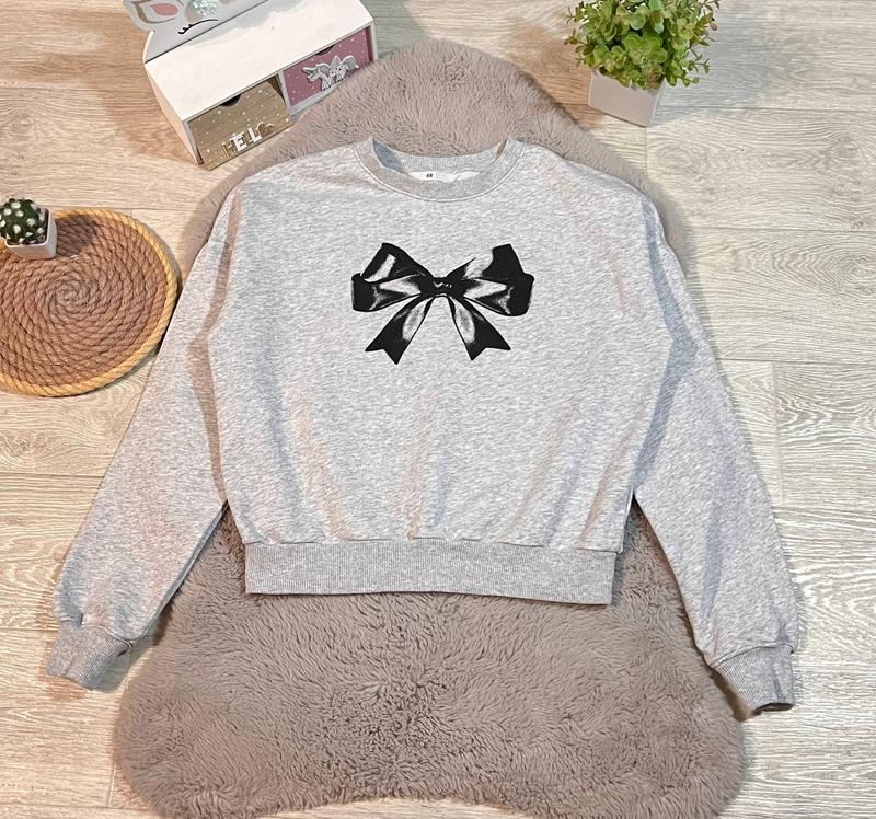 Стильный свитшот H&M стан идеален приятный мягенький коттон петля цвет серый меланж, размер пишет 12р дол 55 пог 50 рукав от горла 70