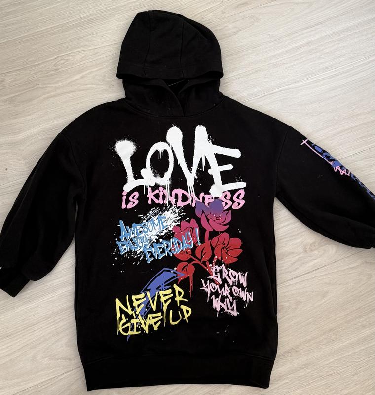 теплий дівчачий світшот Next, чорний з написами, без дефектів, розмір 116 см, для дівчат 6 років
