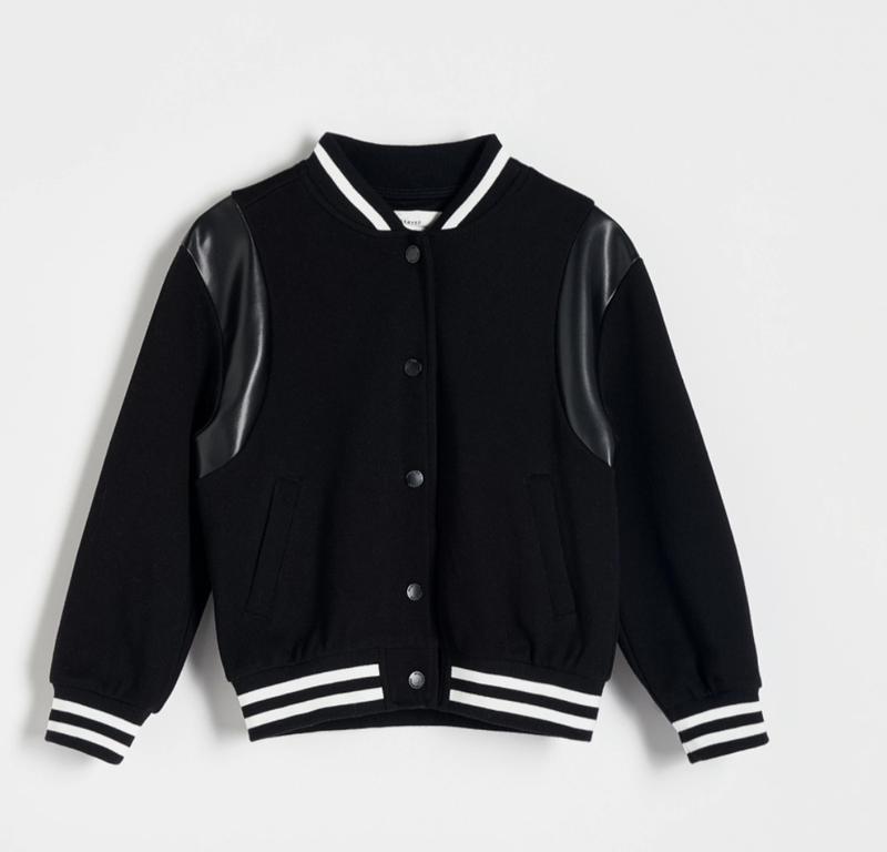 Стильный свитшот-бомбер черного цвета от Reserved на девочку ростом 146 см. Модель удобна и практична, идеально подойдет для школы и ежедневной носки. Хорошо сочетается с джинсами, леггинсами или юбкой. В идеальном состоянии.