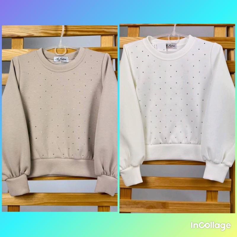 Нарядна кофтинка для красунь 😍 Тканина якісна двухнитка оздоблена камінцями, не відпадають Заміри: довжина/пог/рукав від плеча 128 - 40/37/45 134 - 42/38/46 140 - 44/39/50 146 - 46/41/52