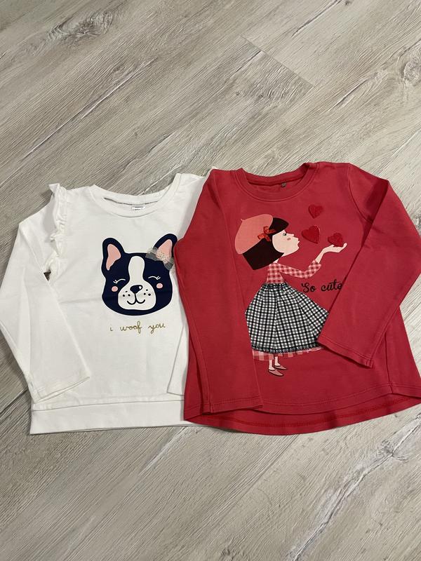 Два світшоти з бавовни,мʼякенькі приємні до тіла,в ідеальному стані,на 5 років,виміри-білий довжина 37,ширина 31,плечі 25,рукав 39,червоний довжина 39,ширина 32,плечі 25,рукав 37.Ціна за пару