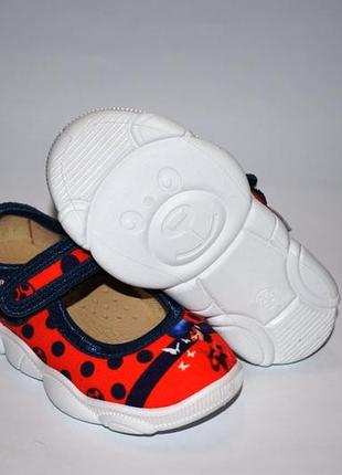 Тапочки ТМ "Ready steady" 22-29 розміри. Виробник - Україна. Устілка - натуральна шкіра з супінатором. Підошва гнучка. Матеріал верху - текстиль, який надає змогу ніжці дихати. Міцна липучка фіксує ніжку. Висока п`ятка для захисту та фіксації. Розмір - довжина устілки: 22 - 14 см 23 - продано 24 - 15,3 см 25 - продано 26 - продано 27 - продано 28 - продано 29 - продано