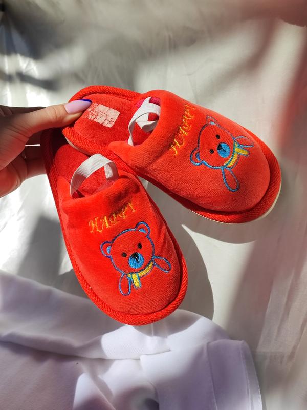 Красиві, яскраві та зручні дитячі тапочки. Комфортні і легкі. Призначені для сезонної шкарпетки. Пошито з м'якого текстилю, приємного на дотик. Підошва: ПВХ. Прикрашені зображенням чарівного ведмедика. Колір відрізняється на декілька тонів, тому що камера не змогла передати наявний червоний колір. На останньому фото приблизний колір. Розміри: 180 - 18 см