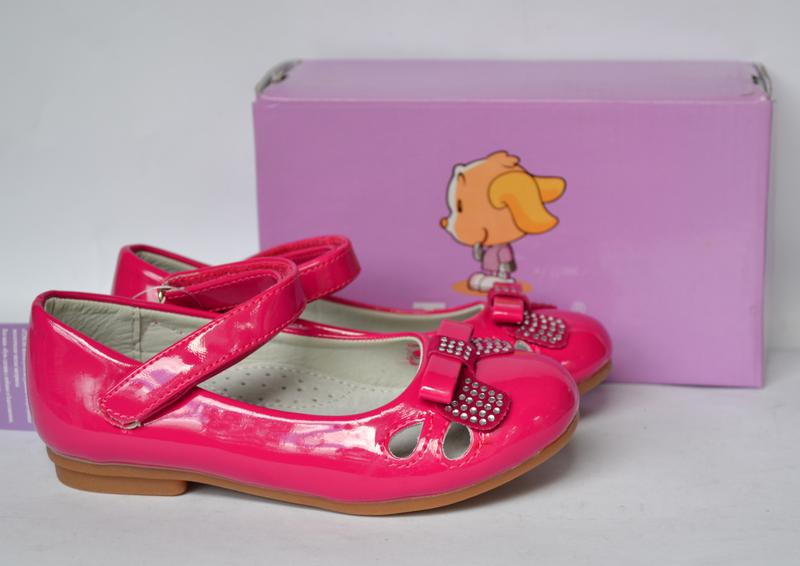 Нарядные туфельки для маленьких принцесс фирмы Том.М. Материал верха - искусственная кожа, внутри кожаная стелька с супинатором. Удобная застежка - липучка. 26 размер по стельке 16 см