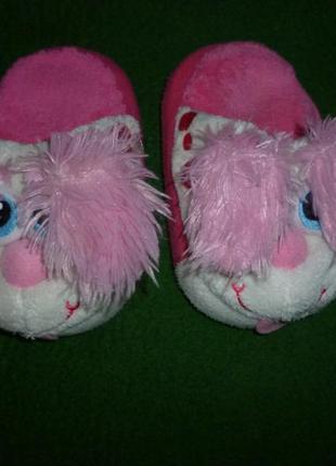 тапочки размер примерно 23-25,по стельке 15см,состояние идеальное,при хотьбе в тапочках у собачки поочередно поднимаются ушки,так как внутри стоит типа маленького насоса,который при нажатии пяткой впрыскивает воздух по трубочке в ушки и они из-за этого поднимаются,вашему ребенку будет очень весело бегать в таких тапочках