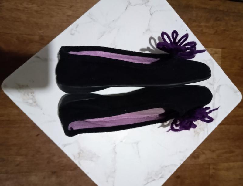 Виробник: Інший виробник Теплі, затишні, на широку ніжку. Матеріал верху — мистецтв. велюр, підошва — прогумована, міцна. Прикраса — в'язані квіти. Р-р 37 . Стан: Б/в. Розмір: 37.