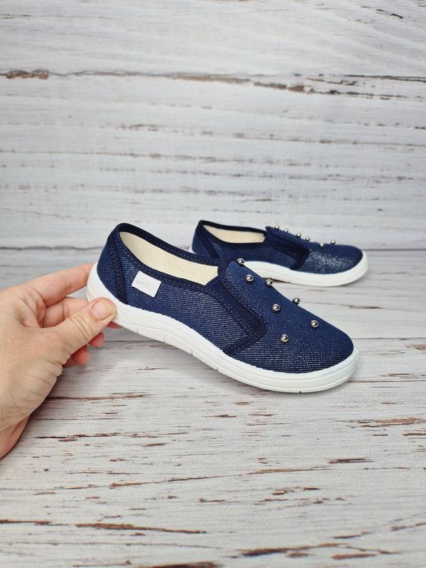 !!! Укр пошта , міст експрес, нова пошта !!! Капці/сліони WALDI Колір: синій Матеріал зовнішній - текстиль Матеріал підкладки - текстиль. Устілка - шкіряна устілка з супінатором Вшиті резинки надійно тримають ніжку Підошва гнучка. Виробник - Україна Розмір по устілці повністю: 30р. по устілці 19,0 см 31р. по устілці 20,0 см 32р. по устілці 20,5 см 34р. по устілці 21,8 см 35р. по устілці 22,8 см 36р. по устілці 23,5 см
