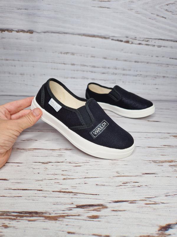Капці WALDI Колір: чорний Матеріал зовнішній - текстиль Матеріал підкладки - текстиль. Устілка - шкіряна устілка з супінатором Липучка застібка надійно тримає ніжку Підошва гнучка. Виробник - Україна Розміри з 31 по 36 по устілці повністю: 31р. по устілці 20,0 см 32р. по устілці 20,5 см продані 33р. по устілці 21,0 см продані 34р. по устілці 21,8 см продані 35р. по устілці 22,3 см продані 36р. по устілці 23,0 см продані