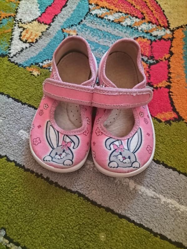 Тапочки с зайчиком в почти идеальном состоянии, очень удобные в садик, вторые тапки в подарок. размер 23
