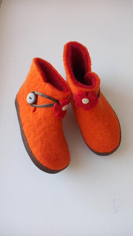 Тапочки для девочки из набивной шерсти, очень теплые, подойдут на ножку 17см