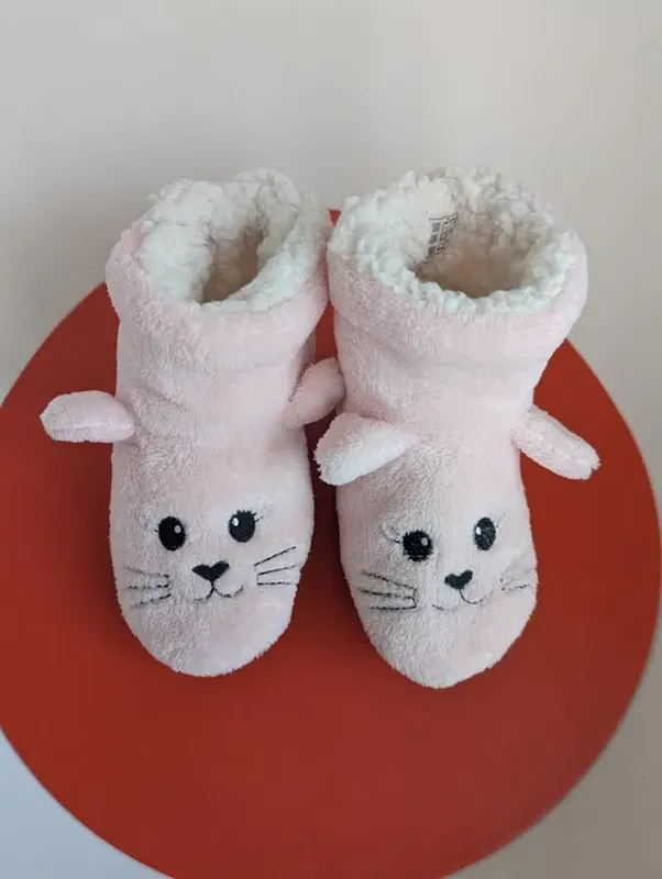 Мягкие теплые высокие тапочки-носочки или тапки-чебитки с набивным утеплителем на девочку 3-4 лет. Нежно-розового цвета с мордочкой и ушками котика. Подошва тканевая с силиконовыми точками-стопперами. Размер 26-28. Состояние новых. Смотрите другие Мои объявления, есть еще одежда и обувь на девочку 1.5-4 года.
