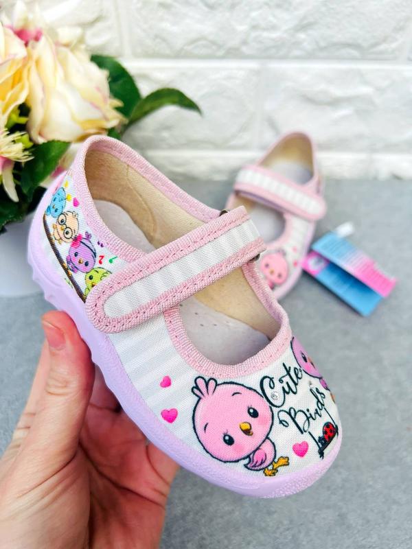 К.1631 👧Тапочки Waldi со смешными цыпленками, стелька кожаная с супинатором, регулируются липучкой. 23р стелька 14,5см 24р стелька 15см 25р стелька 15,7см 26р стелька 16,3см