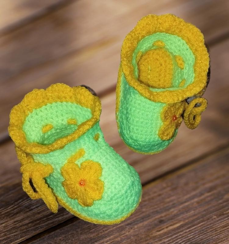 Капчики вязанные крючком. Двойная подошва, теплые, яркие,оригинальные. Согреют ножки Вашей маленькой Принцессе.
