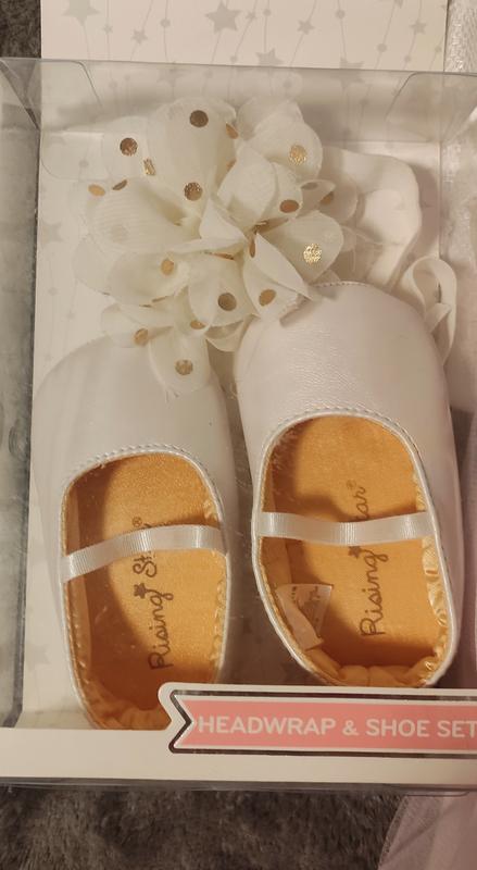 пинетки с повязочкой на голову в коробке, новые не надевать ни разу. повязку немножко носили.