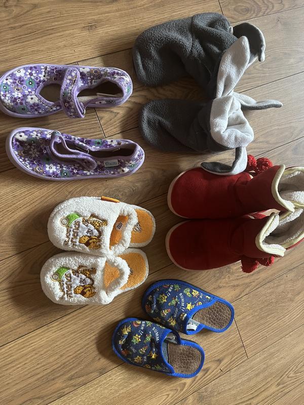 Тапочки белые новые по стельке 15,5 см цена 230 грн, синие в звездочку 17 см цена 50 грн, фиолетовые 18 см цена 195 грн, серые по подошве 19 см цена 200 грн, красные вообще то уличные но носили дома вместо тапок цена 180 грн стелька 19,5 см