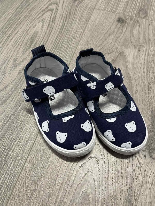 Тапочки детские для девочки в темно-синем цвете с мишками на липучке. Размеры: 20-25.