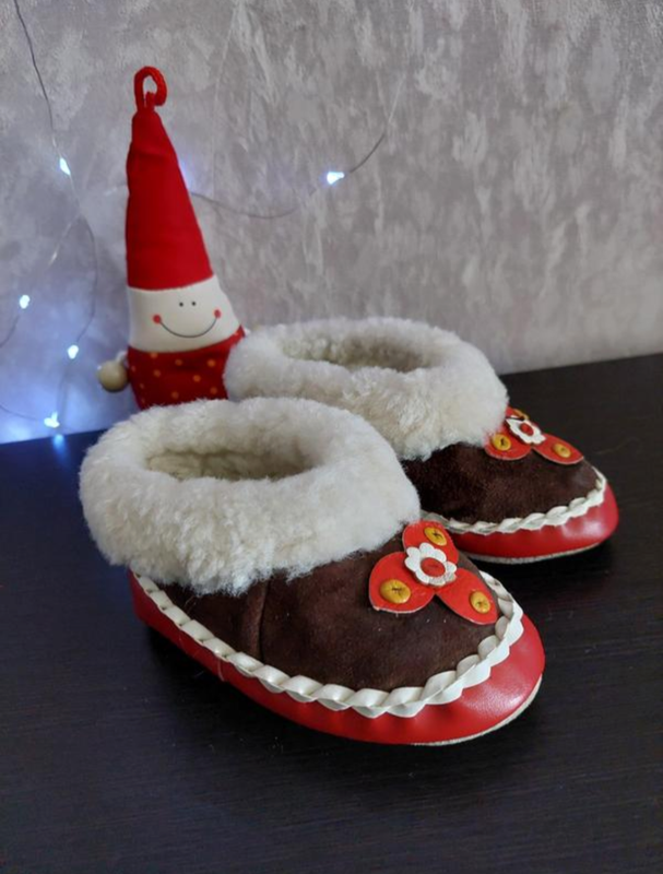 красивые качественные тапочки для детки, в середине натуральная цегейка! внешняя кожа и замша, стелька 12 см