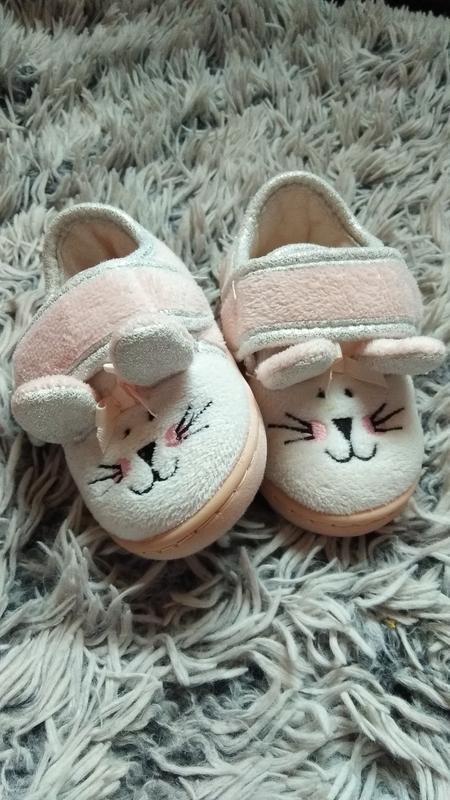 Очень красивые тапочки для малышки 1-2 года. 📌 Состояние: хорошое, после моего ребенка, носили не часто, но есть нюанс маленькое пятнышко, видно на фото. 📐 Замеры: Стелька несъёмная. По внешней стороны стопы 15см.