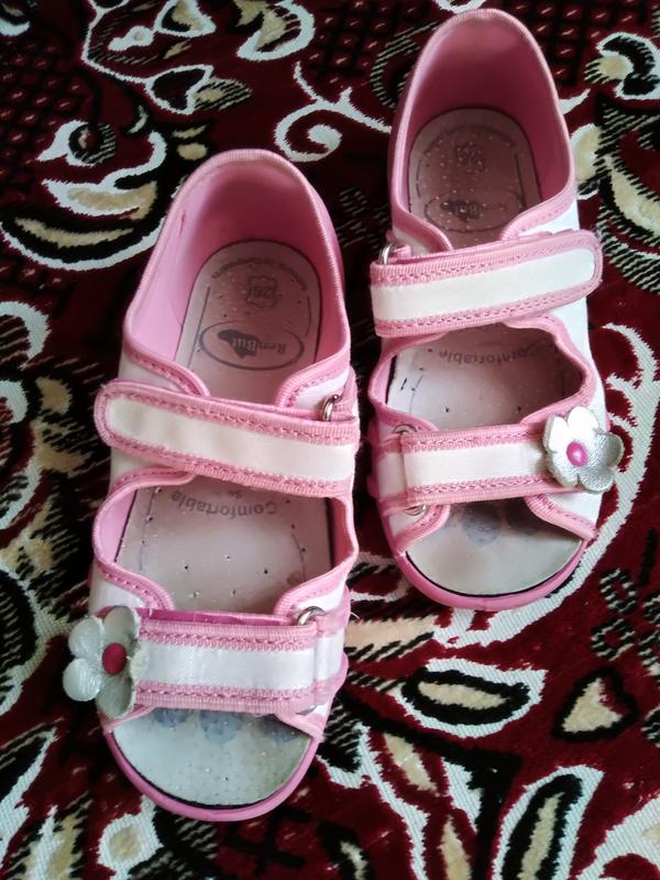 Класні, якісні тапочки. Стан ідеальний. Простояли в садочку, взувались декілька раз. Зручні, тверда п'ятка, ліпучка тримає добре. Не прані, не чищені, лише протерла спиртом устілку. Довжина устілки 18,2 см від краю до краю. На ніжку до 17,5 см, у нас зараз 18см, трохи випирає носок. Дуже нам подобались, купуємо здебільшого лише цю фірму. Думаю будете задоволені.