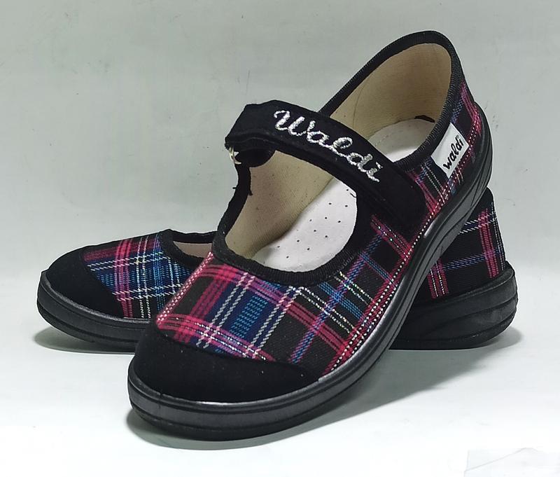 Тапочки для девочек Waldi р.30-36 Мод. Алина Клетка черный Материал-плотный текстиль Стелька-кожаная с супинатором Подошва-гибкое ПВХ Размерная сетка: размер и длина стельки 30-19,0 см 31-19,8 см 32-20,5 см 33-21,0 см 34-21,5 см 35-22,5 см 36-23,0 см
