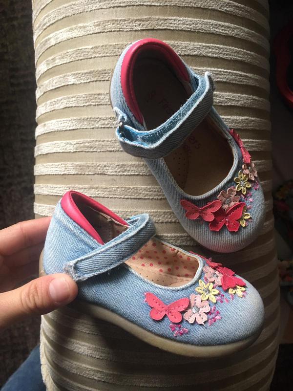 Очень крутые пинетки джинсовые с цветочным принтом на липучках . Есть нюансы,на носочках есть пятнышки , но несущественно видны... Фирмы George