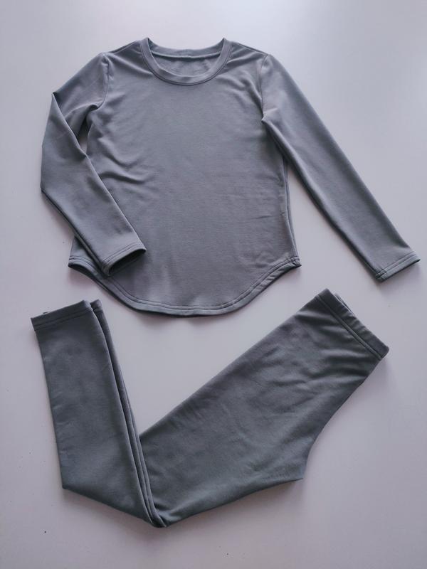 Рост 122-128-134. Один размер, смотрите замеры. Ткань трикотаж с начесом, цвет серый кофта по груди 35 (70) длина по спине 49 длина рукава 45 легінси по талии резинка 25-30(50-60) по бедрам 30-35(60-70) длина сбоку 70см