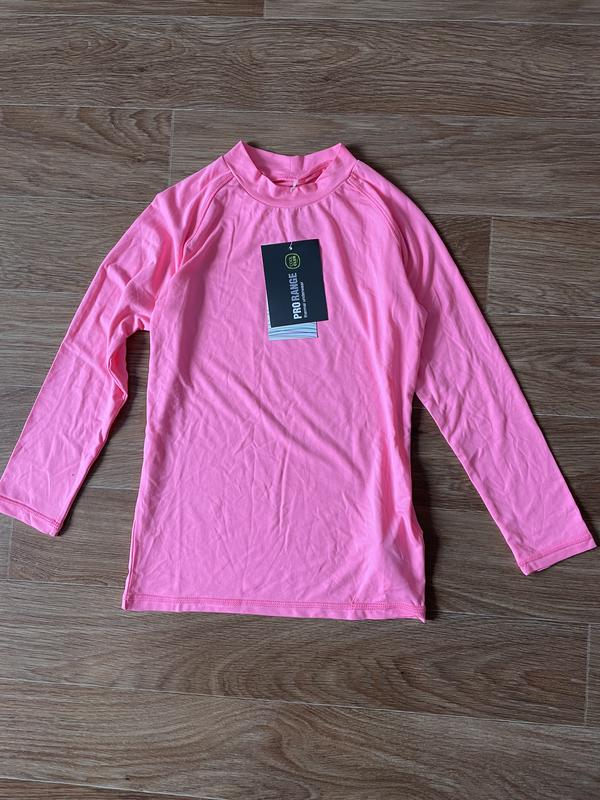 Новий спортивний термо реглан для дівчинки. Красивий яскравий колір. Матеріал тоненький, м’який і дуже приємний на дотик, тягнеться. Не відчуватиметься на тілі. Чудова якість. Розмір 7-8 років, зріст 122-128 см. Склад: 92% поліестер, 8% еластан. В не розтягнутому вигляді довжина від плеча 48 см, ширина під мишками 32 см, рукав від горловини 46 см, рукав по внутрішньому шву 34 см. Тканина дуже добре тягнеться.
