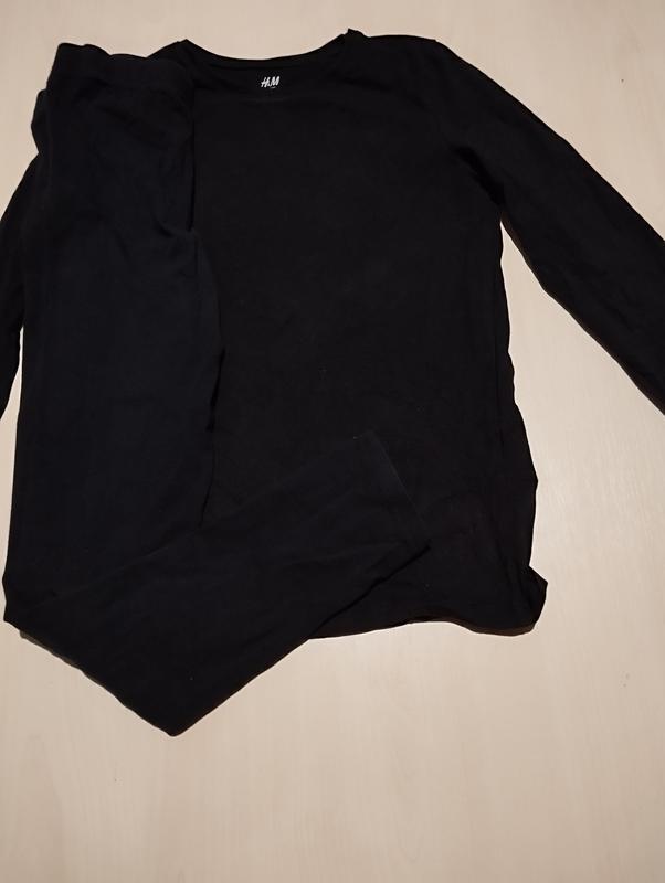 Продам комплект термобелья и рост 140 H&M 100%котон, цвет черный. Дефектов нет,длёнина кофты 48 длина рукава 57 длина брюк 73 шаговой51
