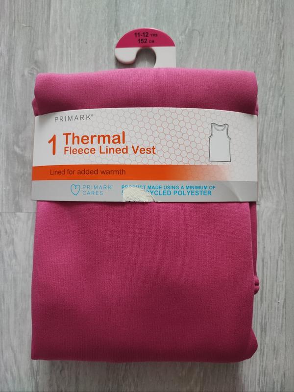 Майка фирмы Primark Внутри флис Цвет насыщенный розовый Размер указан 11-12 лет на рост 152 см Состав ткани: 87% полиэстер, 13% эластан Замеры: ПолуОбхват подмышками - 37 см ПолуОбхват в самом низу - 38 см Длина по центру спинки - 52 см Состояние новое