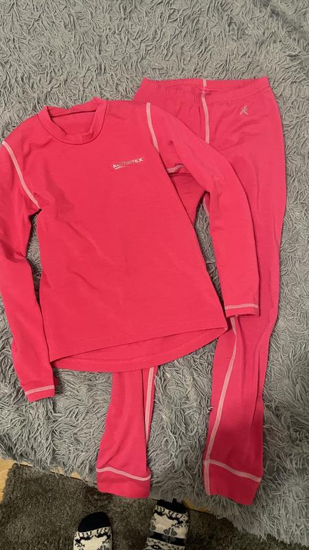 Термобілизна для дівчинки Klimatex, ріст 134 см. Якісна термобілизна від бренду Klimatex — ідеальний варіант для холодної пори року Розмір: 134 см Комплект: кофта + штани Колір: яскраво-рожевий Матеріал: приємний до тіла, добре зберігає тепло Відводить вологу, швидко сохне, еластична Підійде для школи, прогулянок, активного відпочинку та спорту Заміри Стан: гарний Плечі 30 см Рукав 48/40 Довжина від пахв по шву -32 см Штани довжина по зовнішньому шву ( від поясу до низу) 82см, по внутрішньому 62см